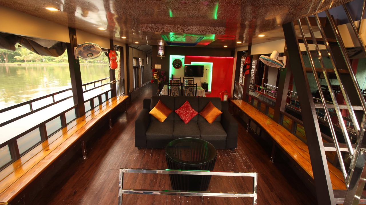 One bedroom houseboat is perfectly suited for couples. Experiencing the backwaters in a houseboat is the right choice for a digital detox. A family can be accommodated in the one bedroom houseboat with cruise, stay and food for 2 adults. The default occupancy of the houseboat is 2 pax, more people can be accommodated if needed with extra charges and children below the age of 5 are complimentary. The room contains a double bed, idle for a couple and a kid less than 5 years of age. The houseboat contains a kitchen where the food for you will be prepared by our Experienced Cheff The boathouse is also used to host events like birthday parties, anniversary and corporate team outings,Small Meetings Etc